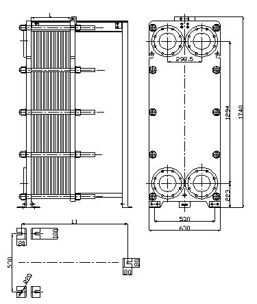 MB15型板式換熱器設(shè)備外形尺寸:(僅供參考)